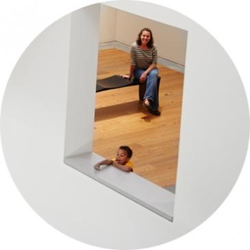 What the process creates is a wall-covering in the tradition of large-scale murals. The building in which you stand is perfect for this type of art. Its architect, Henry Cobb, imagined a museum where there is a sense of discovery as you move through galleries of is different shapes and sizes. The windows and overlooks encourage unexpected encounters with works of art.