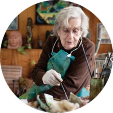 When Dahlov was a young child, she tried hard to make her art look realistic. By the time she became a teenager, she realized other things mattered more to her than representation, such as colors, patterns, and shapes. She says,
